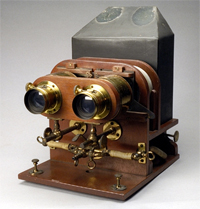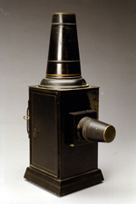 er ukjent hvor apparatet stammer fra, men det er av typen magic latern. |